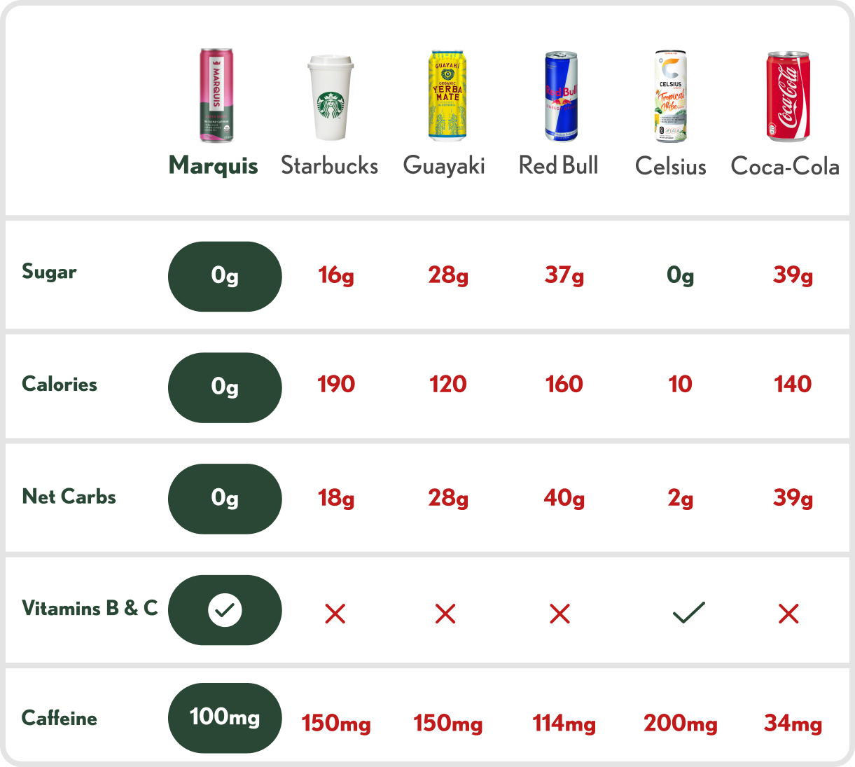 Such a great option to the OG energy drinks that leave you with the shakes and jitters. Marquis is refreshing, flavorful, energizing and doesn't "let you down" at the end of the day!